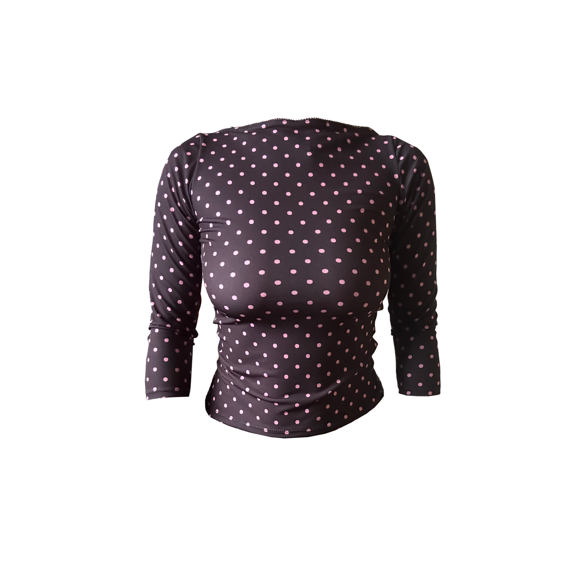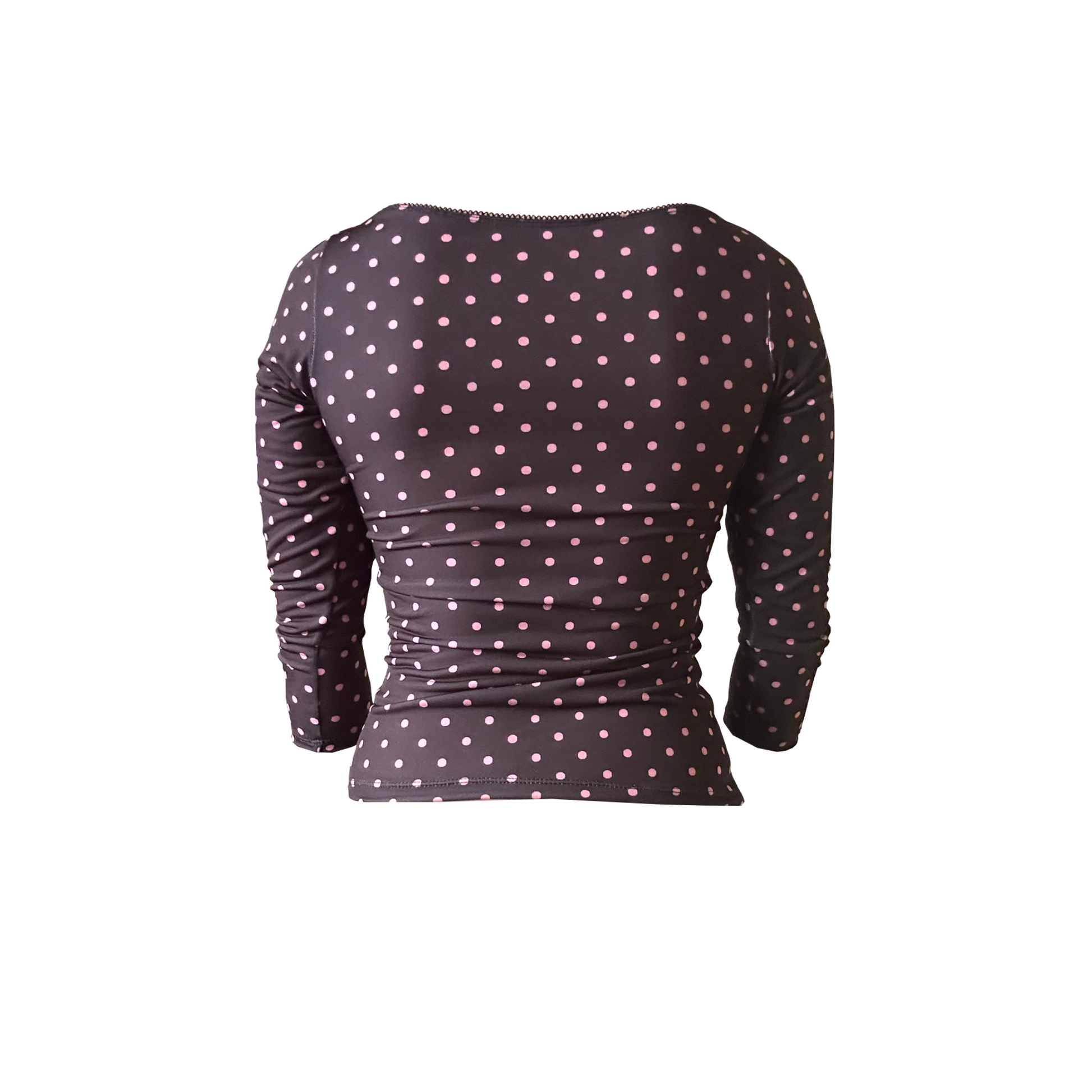 The Agave 2.0: our stretchy, polka dot print 3/4 sleeve top with the most adorable black picot trim!