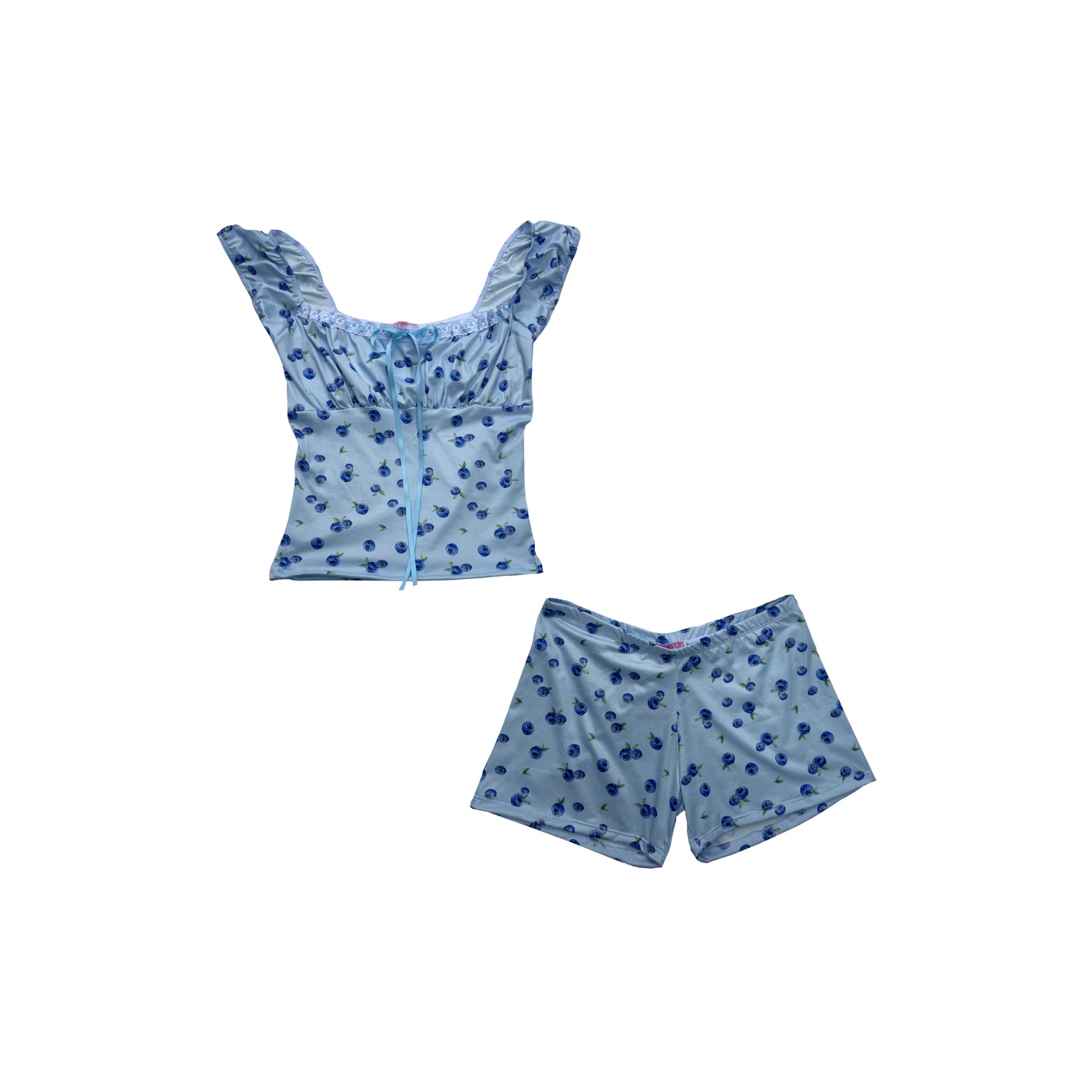 The most amazing, blueberry print mini short and milkmaid set! Perfect for the ultimate picnic bitch summer x