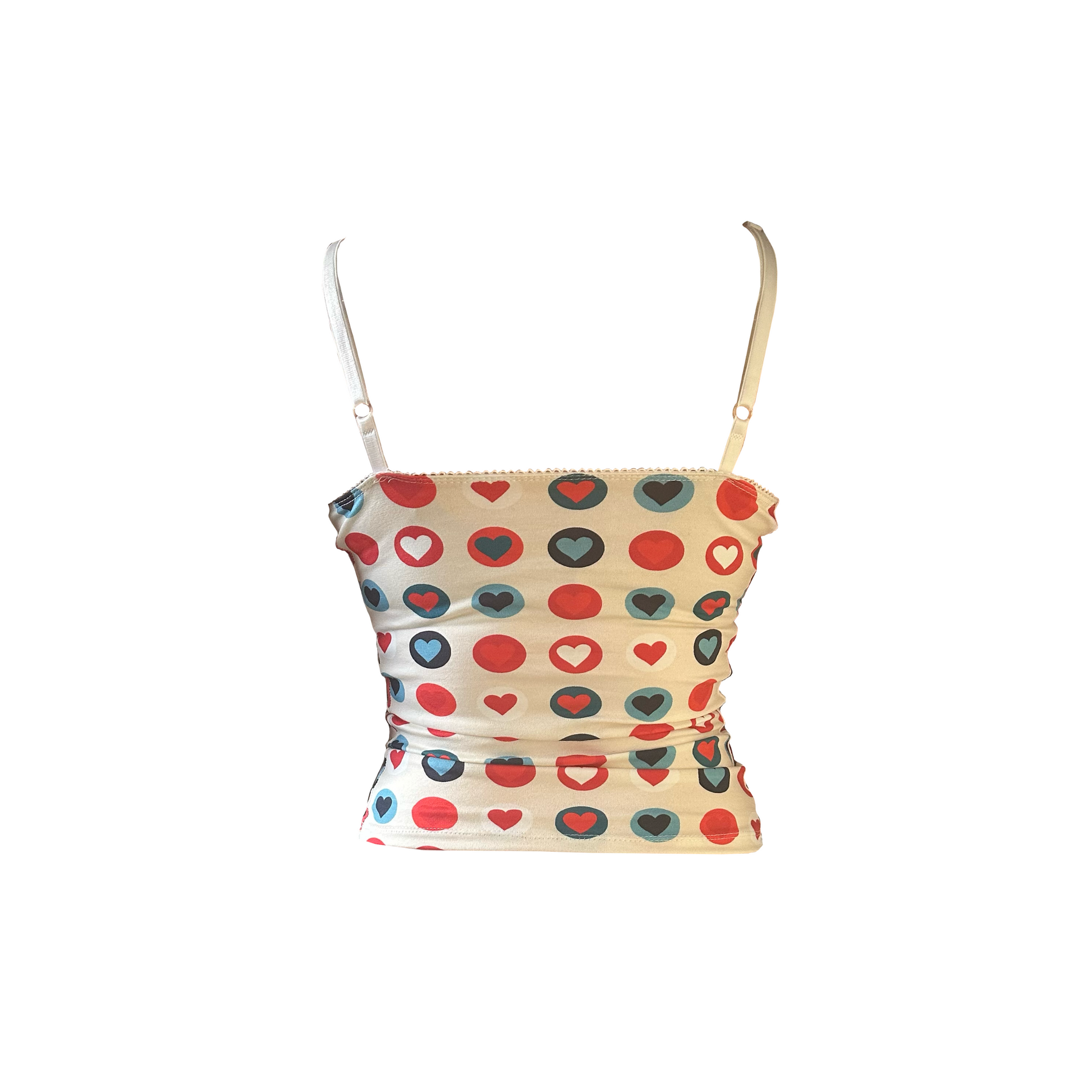I <3 U Cami: our stretchy, heart print cami top with the most adorable picot trim!