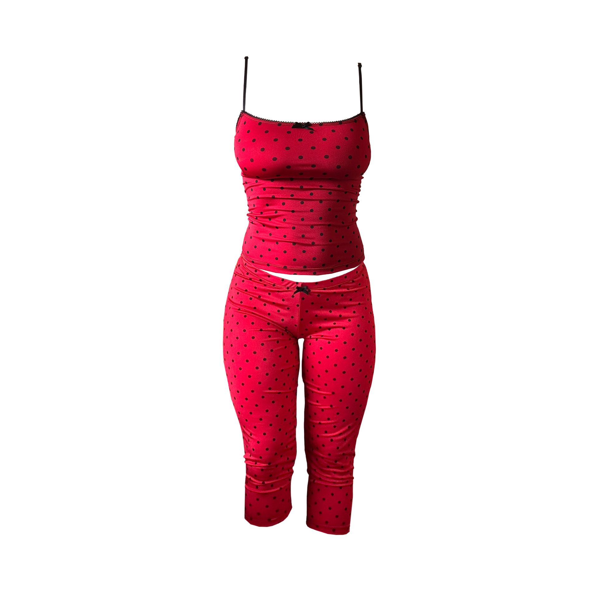 The most amazing, red and black polka print capri and cami set! Perfect for the ultimate picnic bitch summer x